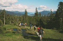 - Hiking halfway up Mt. Roberts to a big wooden cross